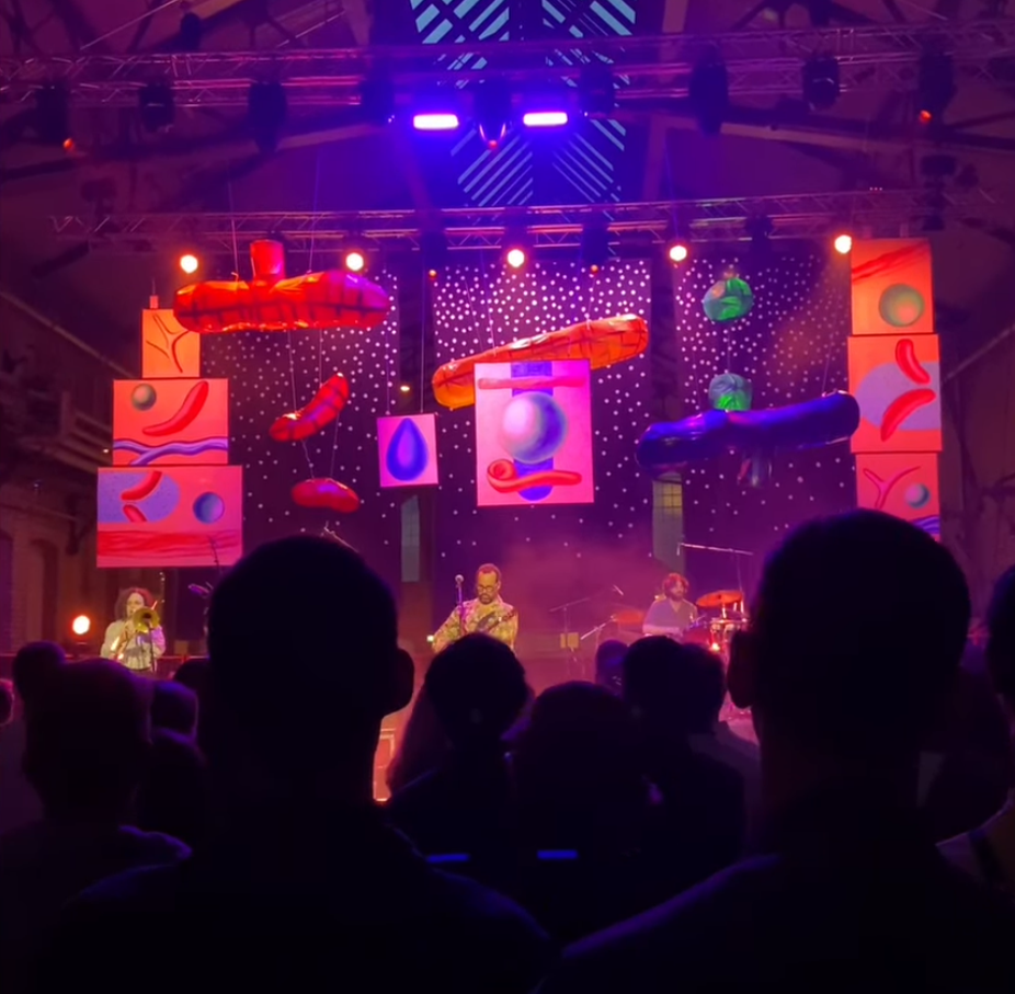 The scenography for Hosoi Festival 2025 was a layered installation of painted backdrops, rice paper lantern-inspired sculptures, and oil paintings. I designed and built these in my studio in Årsta. I also art-directed for the festival, including making the festival poster & signs. Paintings and sculptures are available for purchase, contact via the address below.